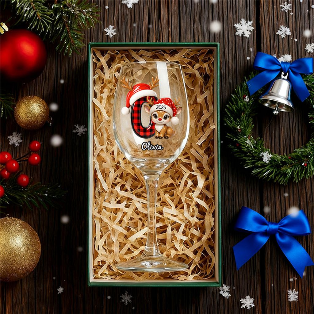 Festive and Cute Reindeer Christmas Letters – Personalized Wine Glasses and Stemless Wine Glasses