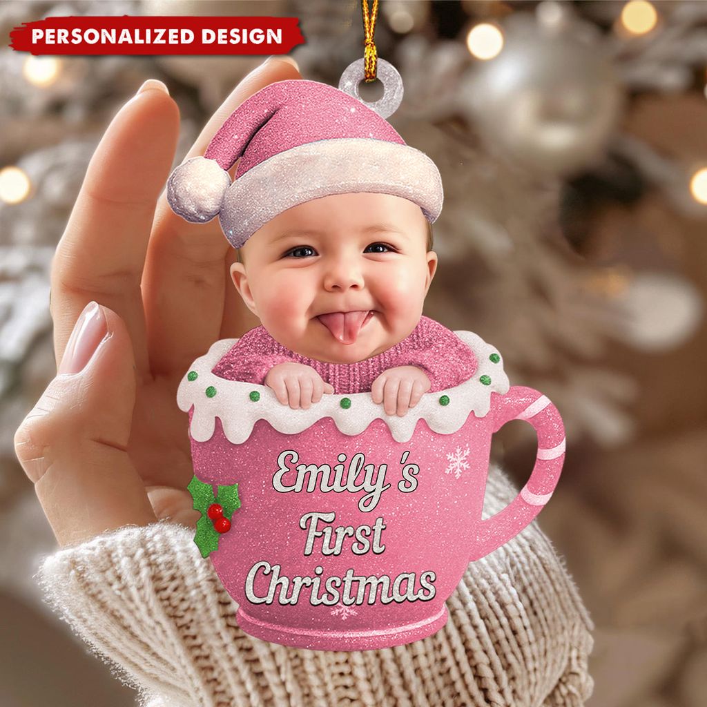 3D Effect Baby Photo First Christmas - Personalized Acrylic Ornament