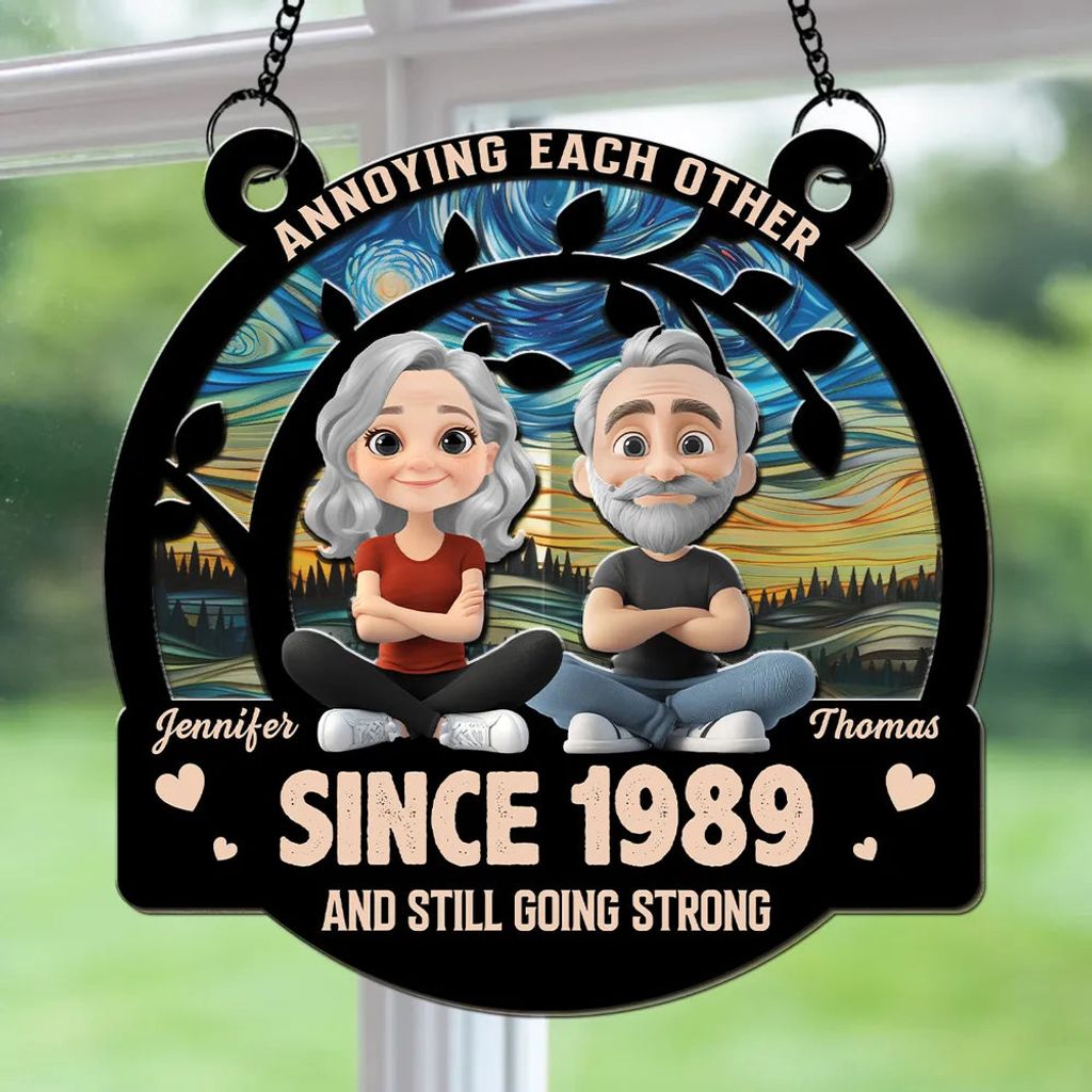 The “Annoying Each Other Since 1989” ornament captures the fun-loving dynamic between long-term couples. The whimsical cartoon characters represent years of playful affection, while custom names and the year add a personal touch that makes every glance meaningful.