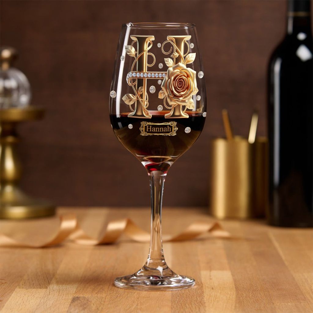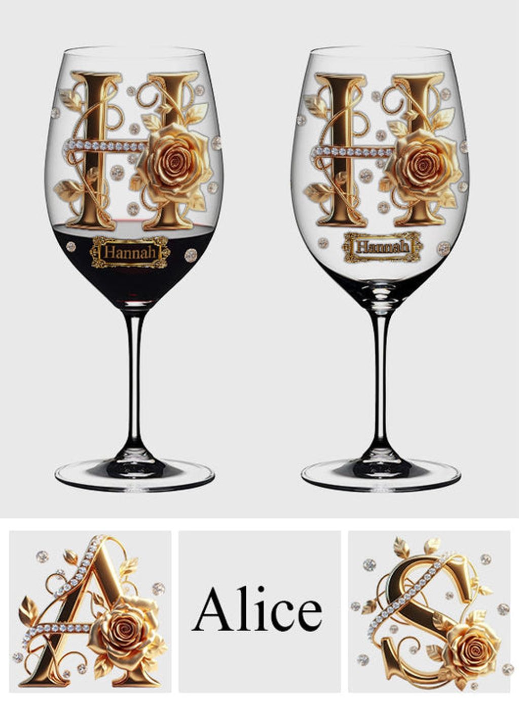 - 1 x Alphabet Initial For Wine Lovers - Personalized Wine Wine Glass With Long Stem