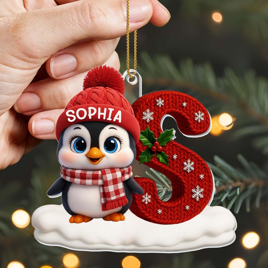 Celebrate The Holiday Spirit With Penguin And Snow - Personalized Custom Acrylic Ornament, Christmas Gift