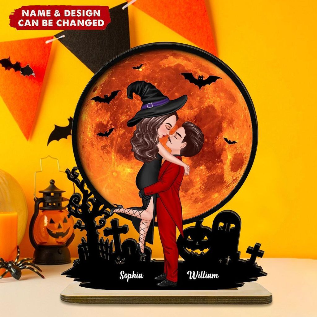 - 1 x Couple Hugging Under Halloween Moon Personalized 2-Layer Wooden Plaque