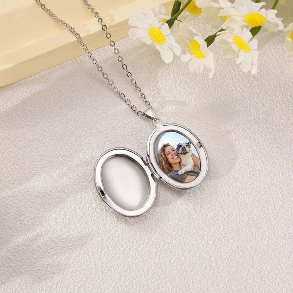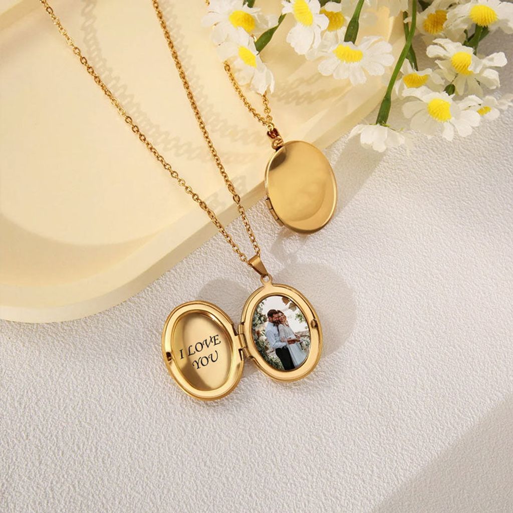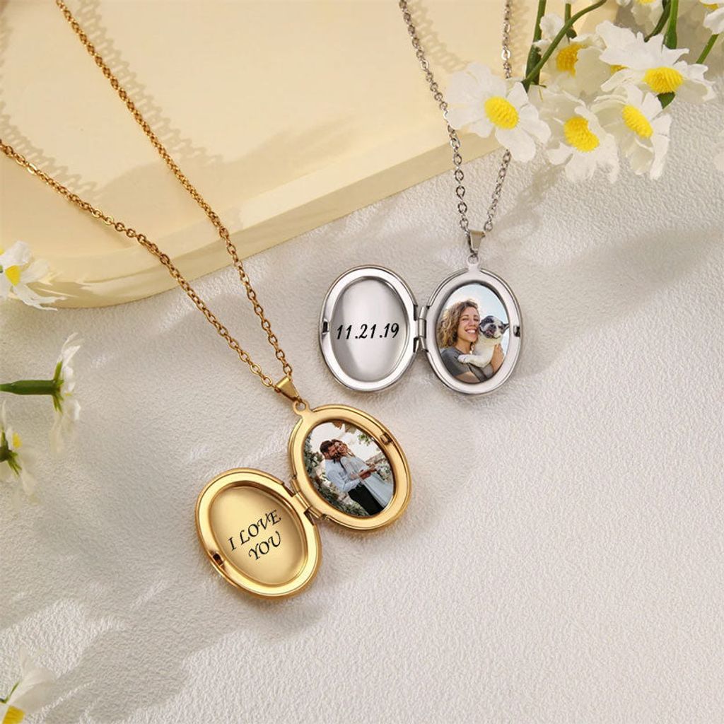 • 1 x Custom Oval Photo Box Necklace Couple Commemorative Gift
