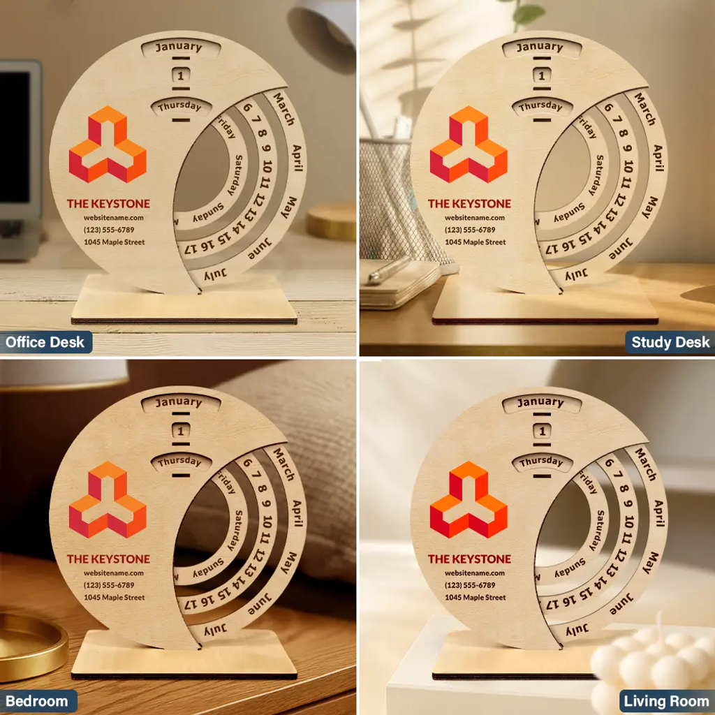 Crafted with elegance and functionality, this perpetual desk calendar features a spinning design that combines practicality with professional charm. Place it in an office, conference room, or reception area to enhance décor while celebrating the spirit of collaboration.
