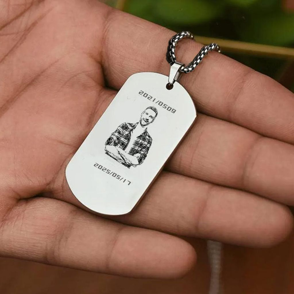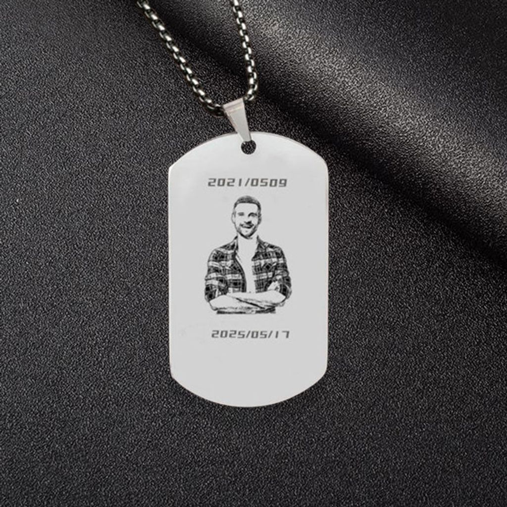 This necklace combines modern and classic design elements, simple yet stylish. The military badge-shaped design gives it a unique personality, while the titanium steel material makes it tougher and more durable. You can engrave a personalized name or photo on the necklace as needed to create a unique accessory that belongs to you.