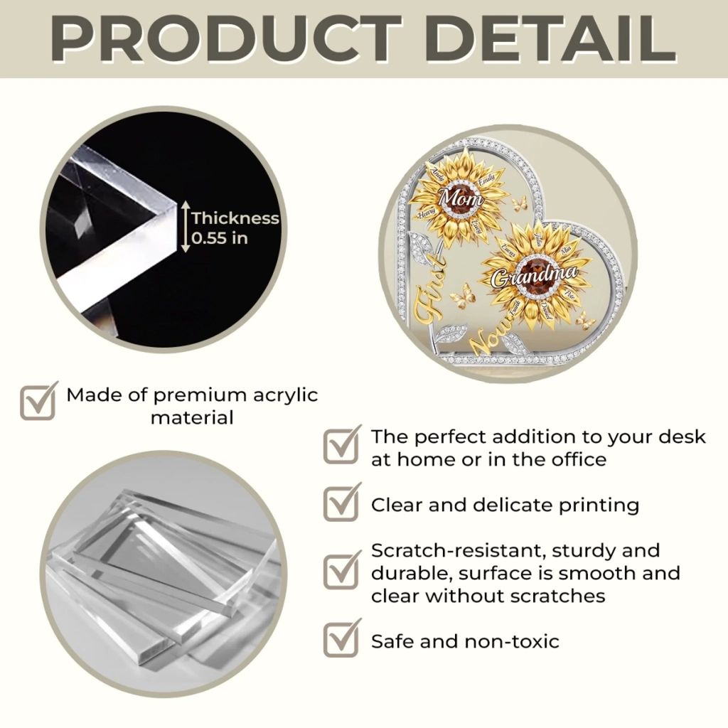Custom Sunflower Acrylic Plaque - Personalized Mother's Day Birthday Gifts For Mom, Grandma - Forever Our Sunshine