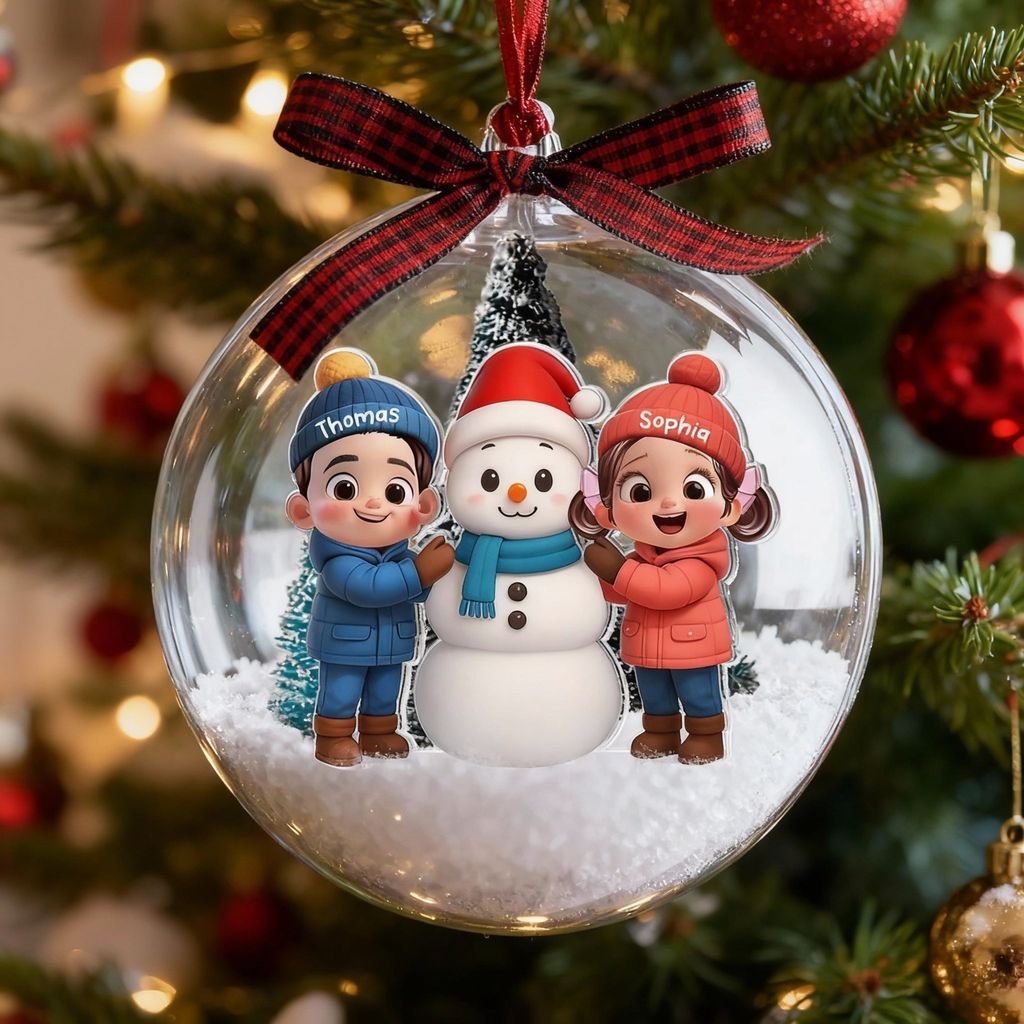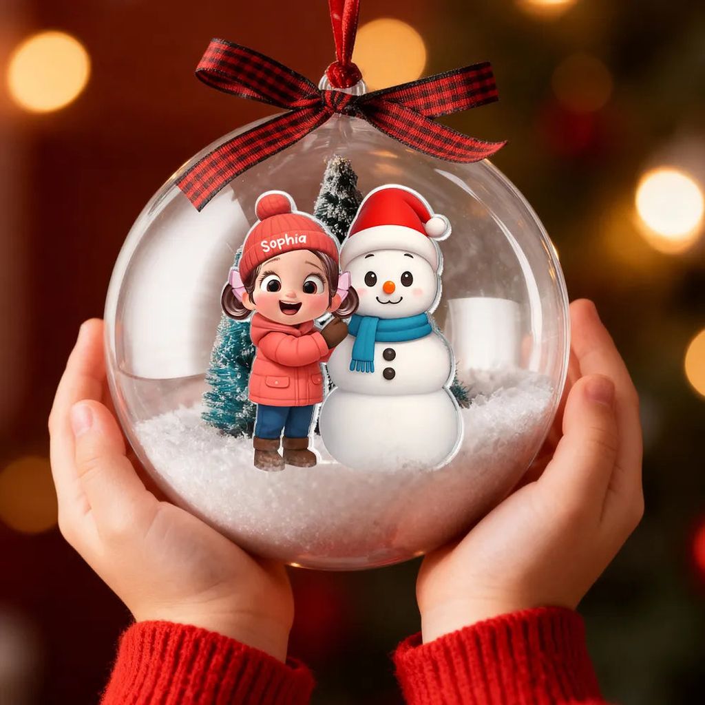 This Snow Globe Ornament turns your tree into a story. The clear acrylic globe showcases a charming 3D cartoon snowman scene and supports personalized design, creating a one-of-a-kind family keepsake. It is lightweight, shatter-resistant, and easy to hang, so you can decorate with confidence and joy.