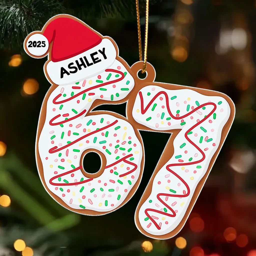 Personalized Acrylic Ornament 67 Gingerbread Design, Teen Slang Christmas Tree Decor, Cute Unique Gift for Grandkids