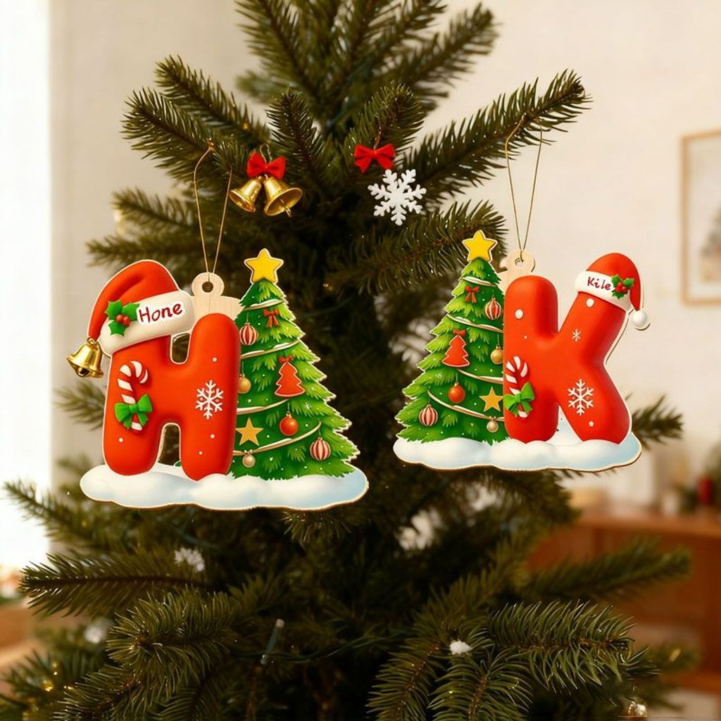 Personalized Christmas Tree & Letter Ornament | Custom Name A-Z Initial Holiday Decor