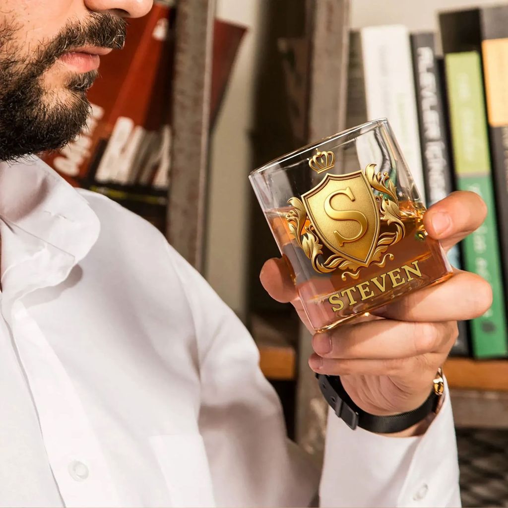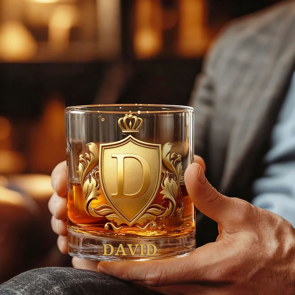 Elevate your whiskey-drinking experience with this Personalized Golden 3D Badge Initial Name Whiskey Glass. Crafted for the whiskey lover or bartender in your life, this glass features a bold 3D golden badge and custom initial engraving, making it a truly unique and thoughtful gift. Whether it’s for a birthday, anniversary, or just to add some elegance to your home bar, this glass will impress every time.