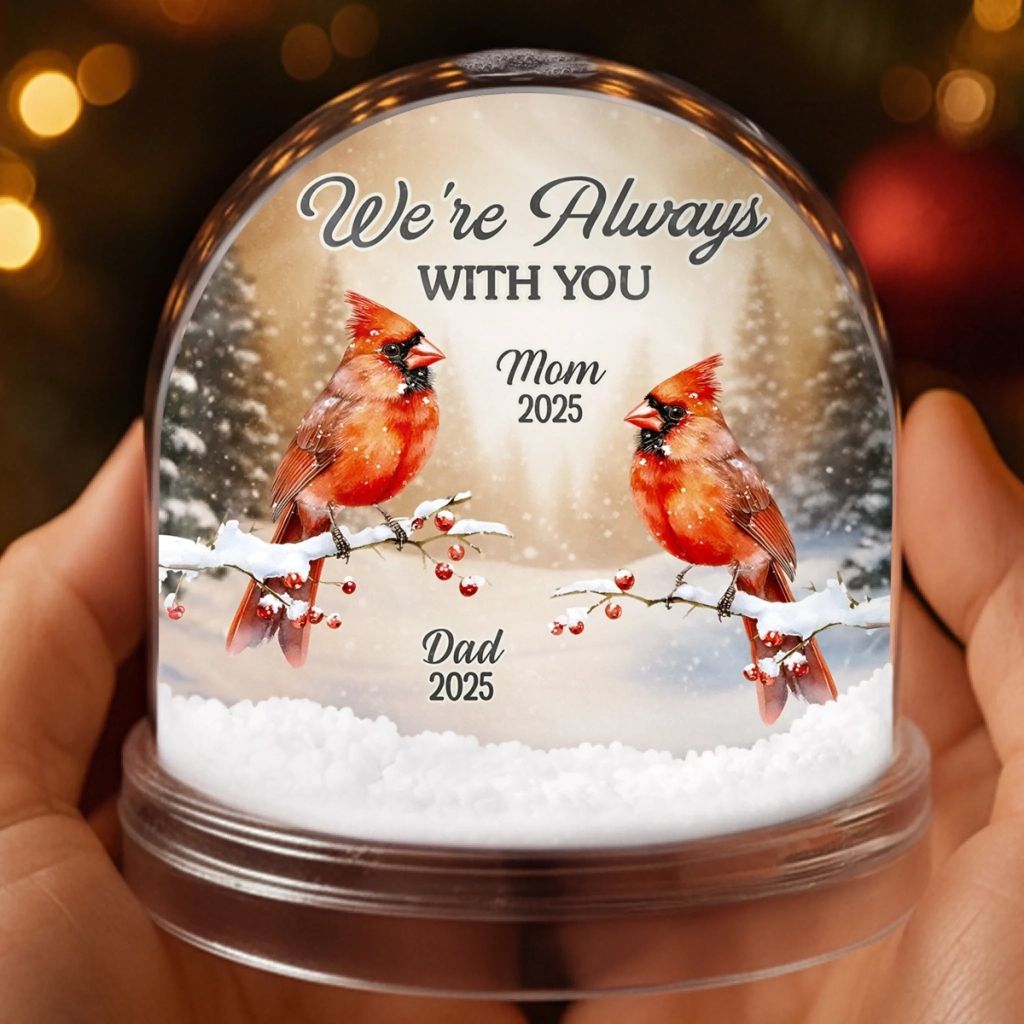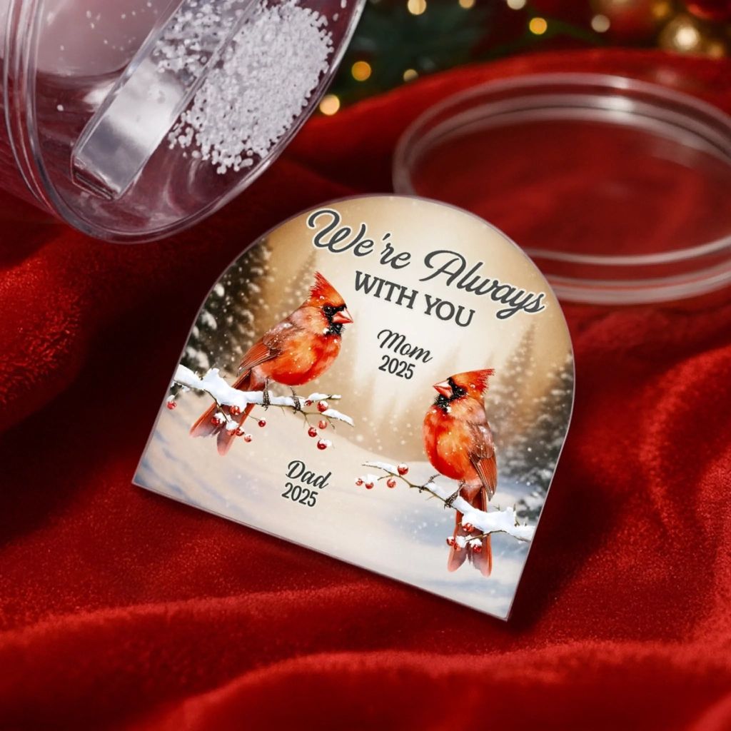 Custom Cardinal Acrylic Snow Globe - Personalized Christmas Memorial Sympathy Gifts For Loss Of Mom, Dad - Memories Whisper You Are Here