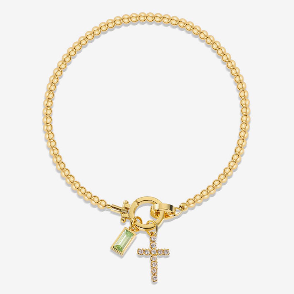 Personalized Beaded Birthstone Cross Charm Bracelet – Meaningful Gift for Loved Ones