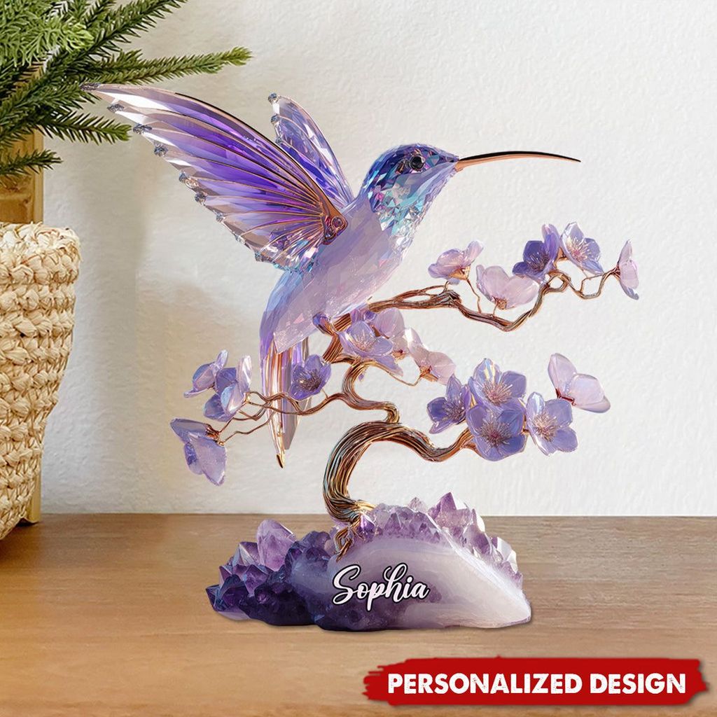 Stunning Amethyst Styled Hummingbird-Personalized Hummingbird Acrylic Plaque