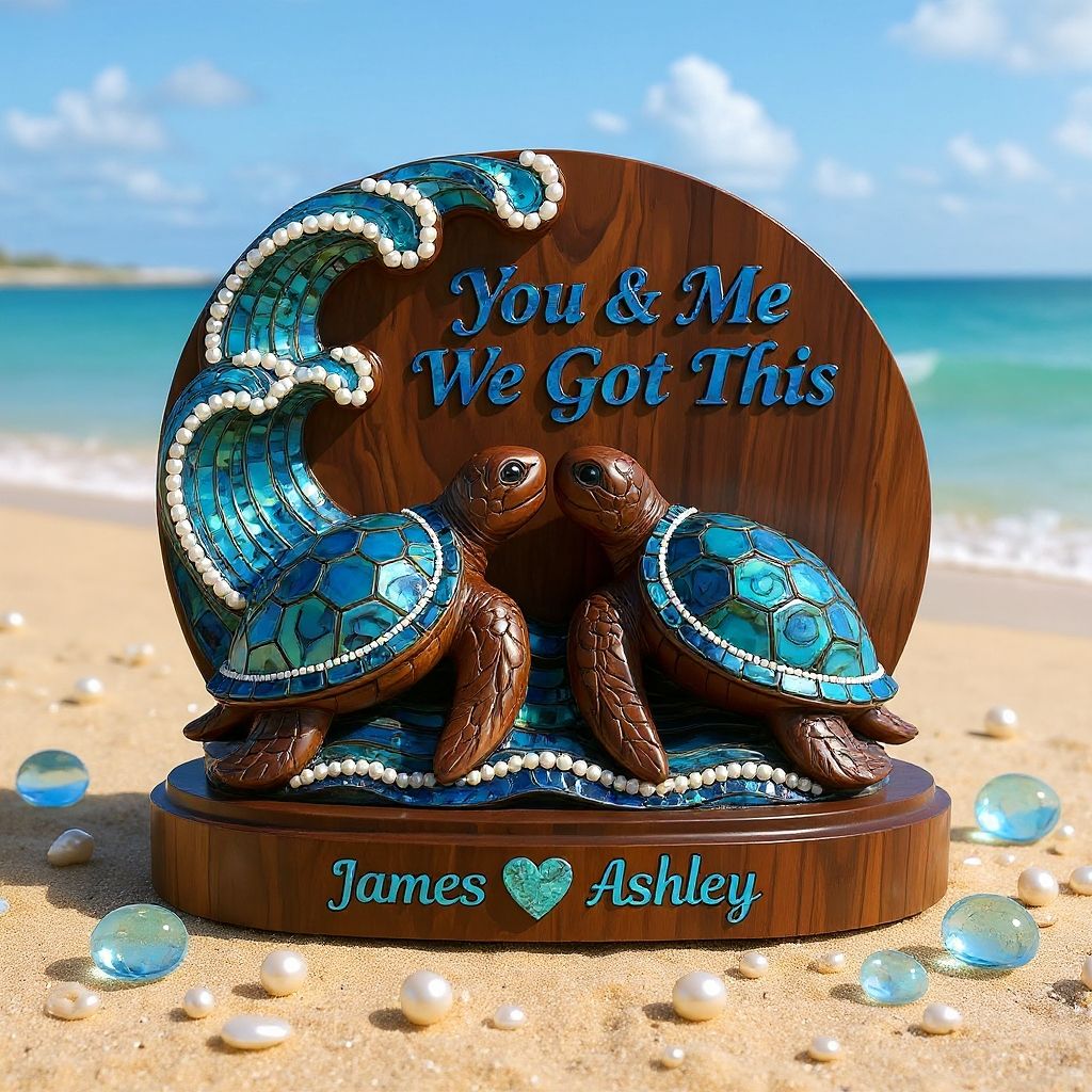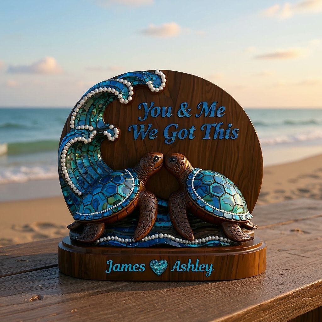 • 1 x You & Me We Got This, Mother Of Pearl Styled Turtle Couple - Personalized Couple Custom Shaped Wood Plaque