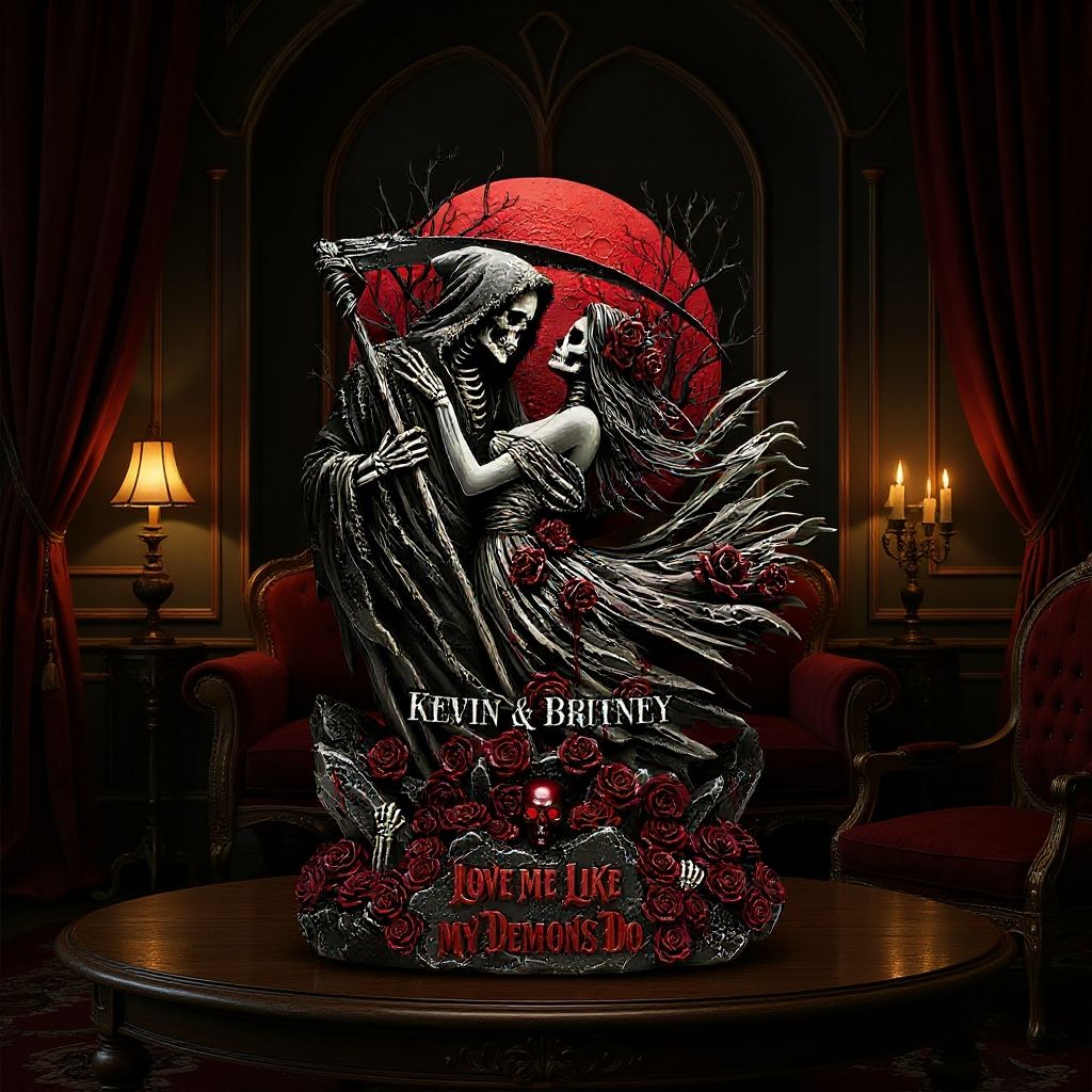 Decorate your space with our custom-designed acrylic couple's skull plaque, a perfect blend of modern elegance and personalized elements.
