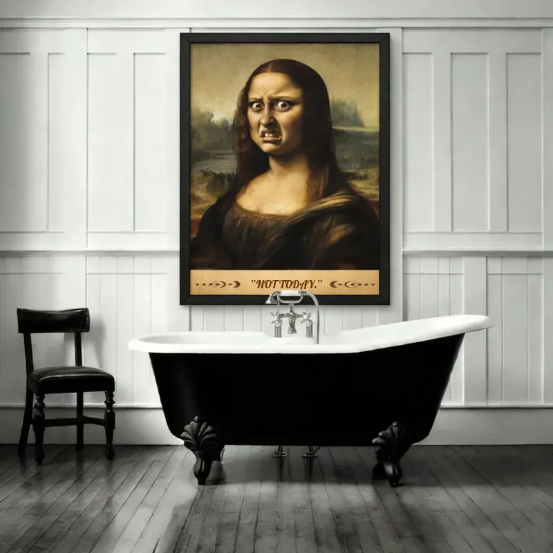 Fun Mona Lisa Mural: This customizable fun Mona Lisa mural lets you write what you want to say to him or her. Its unique "disdain to the point of being grotesque" tone provides plenty of laughs. This fun Mona Lisa mural is not just a decoration, but an expression of attitude.