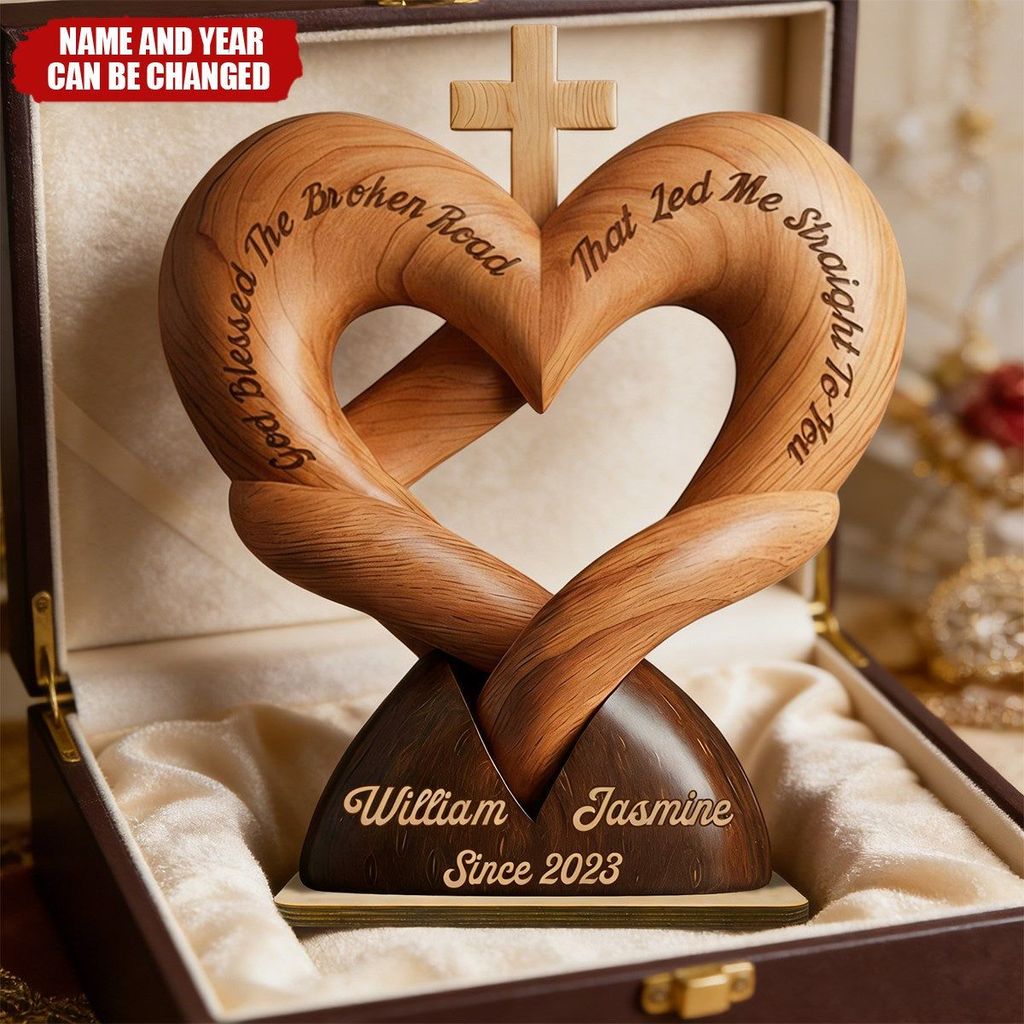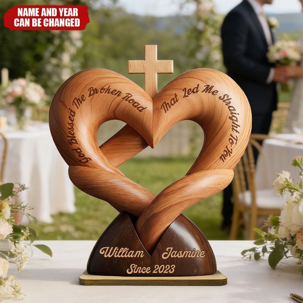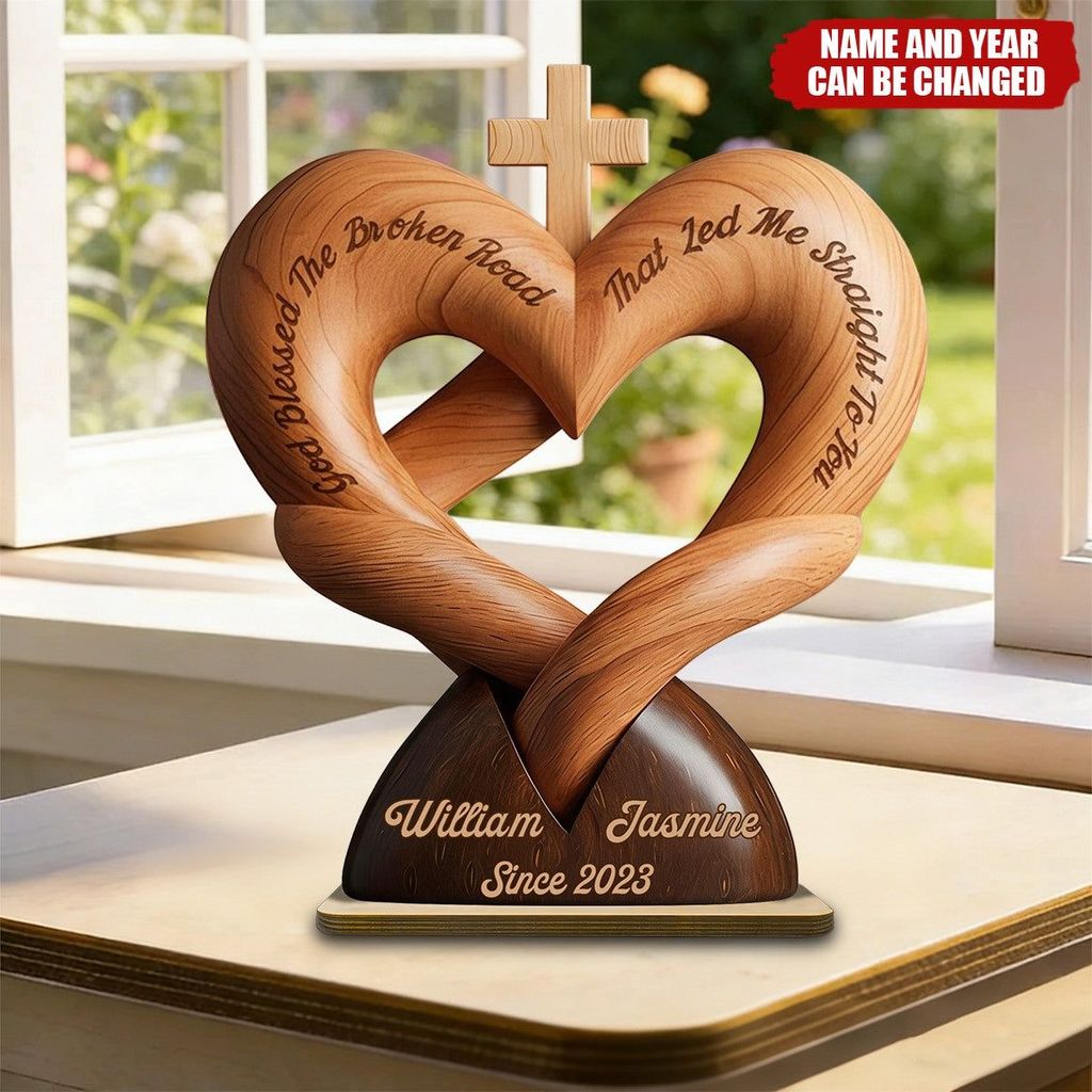 God bless the broken road that led me straight to you-personalized 2-layer wooden plaque
