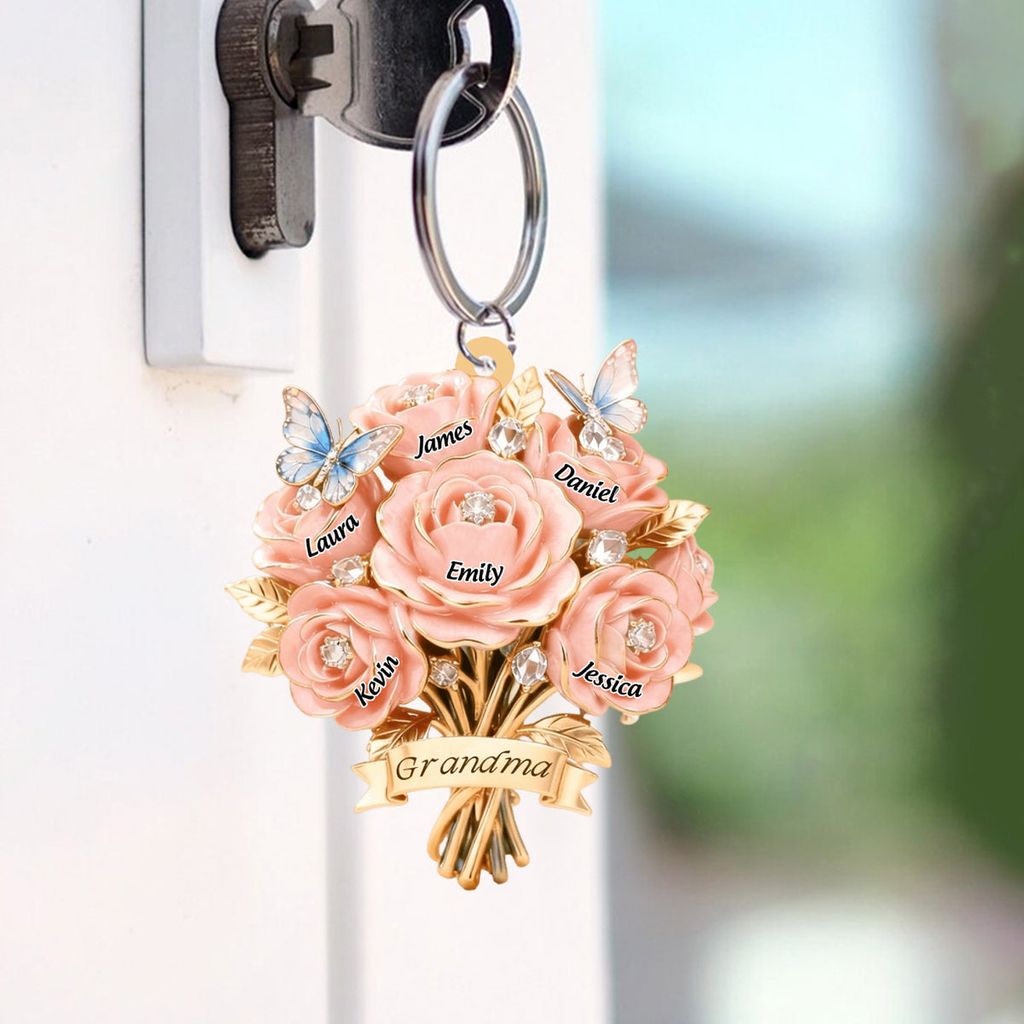 I Love You Mom - Personalized Mother Grandma Bouquet Shaped Keychain