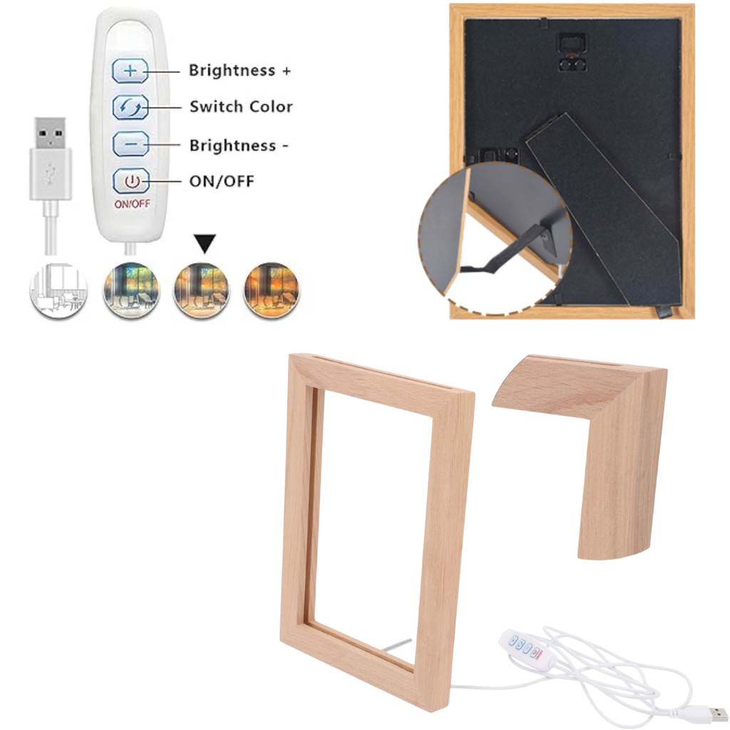 Quality Wood LED Frame: 3 Light Settings via USB