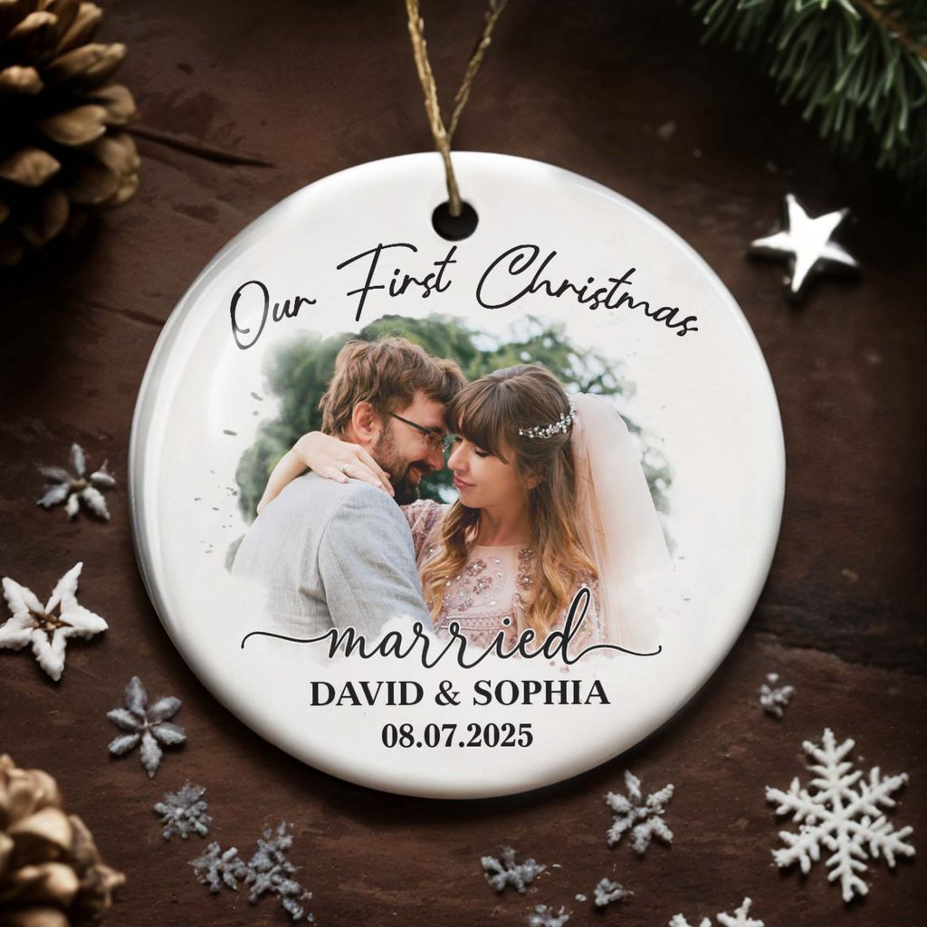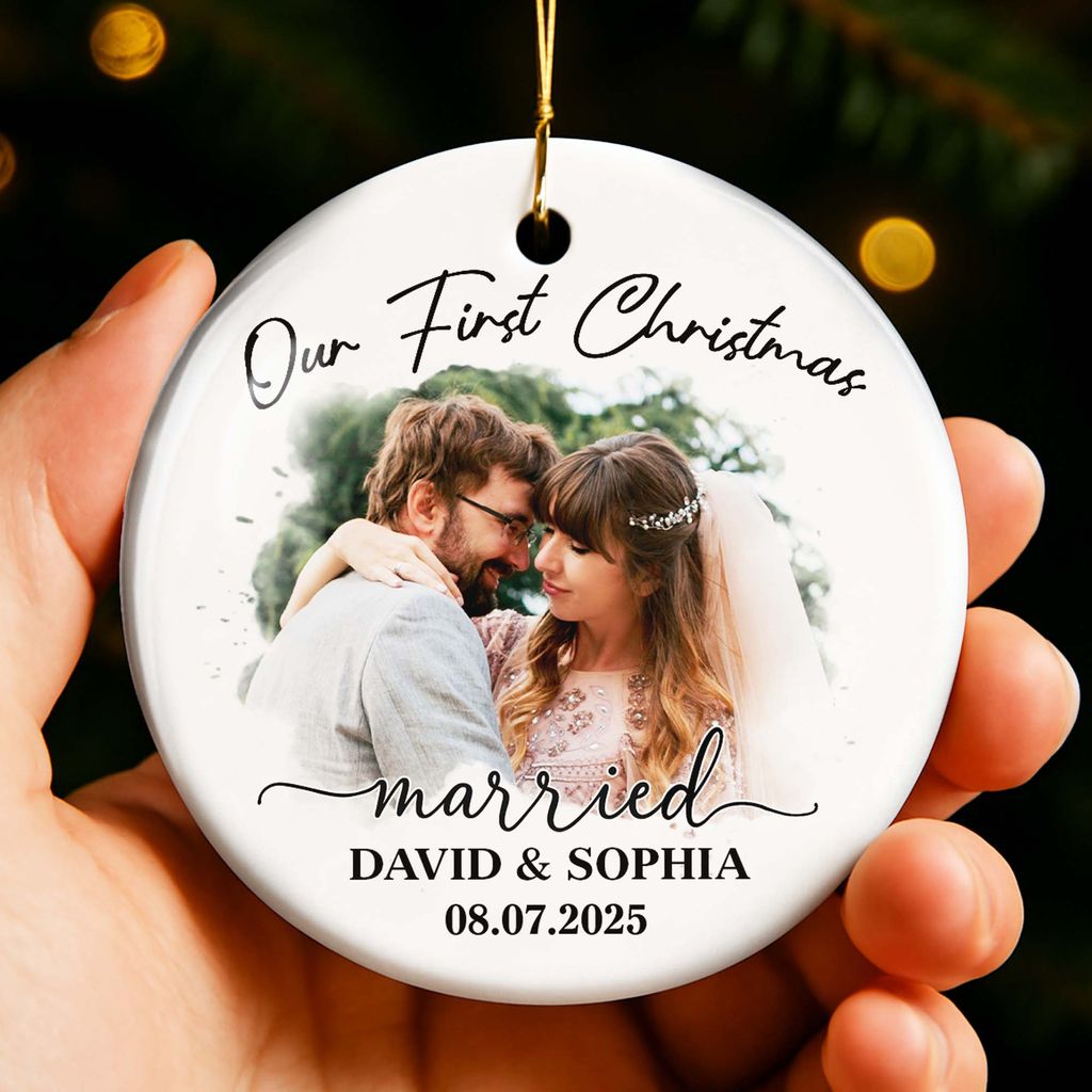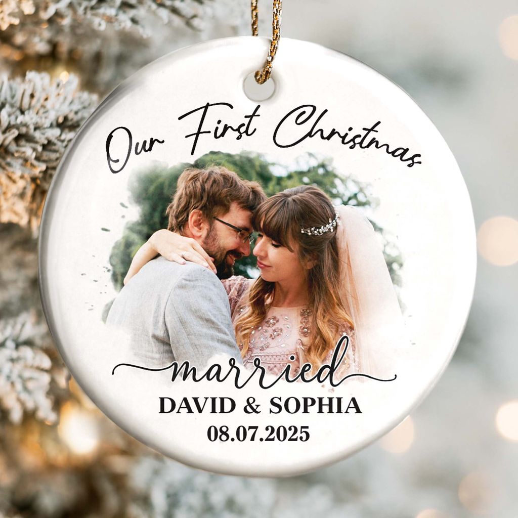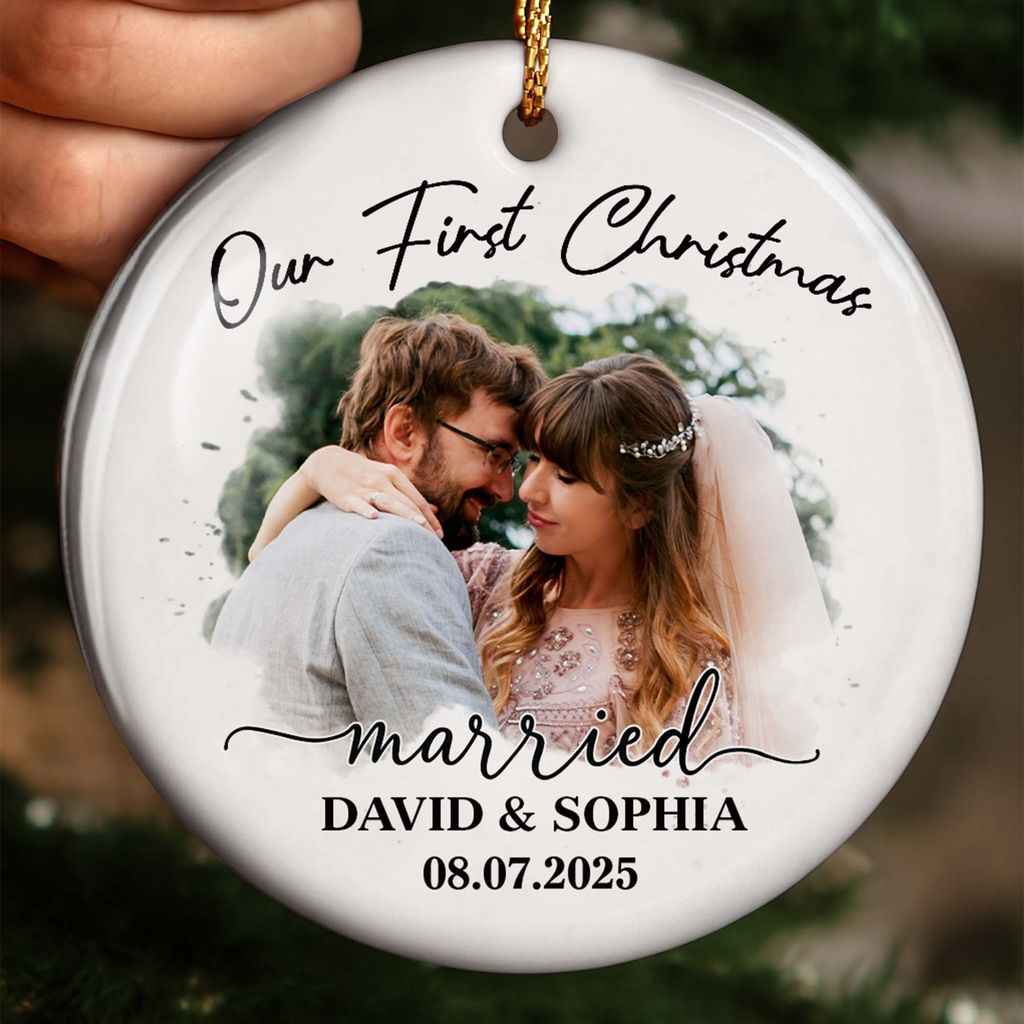 Our First Christmas Married, Wedding Couple - Personalized Custom Ceramic Ornament With Round Shape - CPL540_RCE