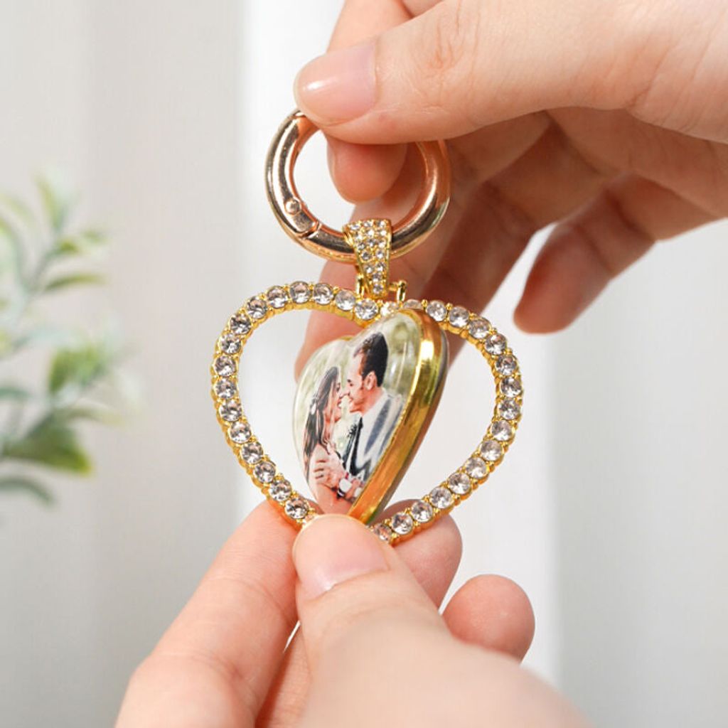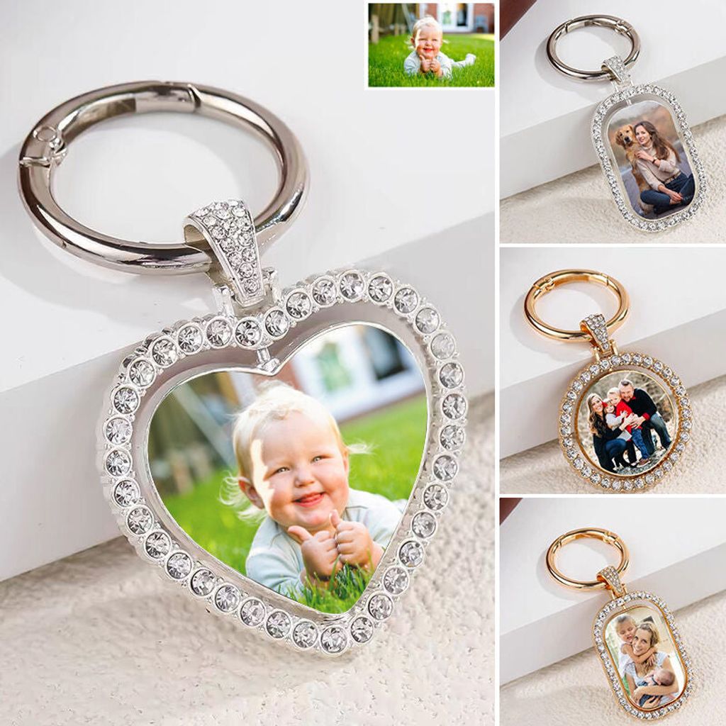 • 1 x  Personalized Photo Keychain with Diamond Romantic Gift for Family