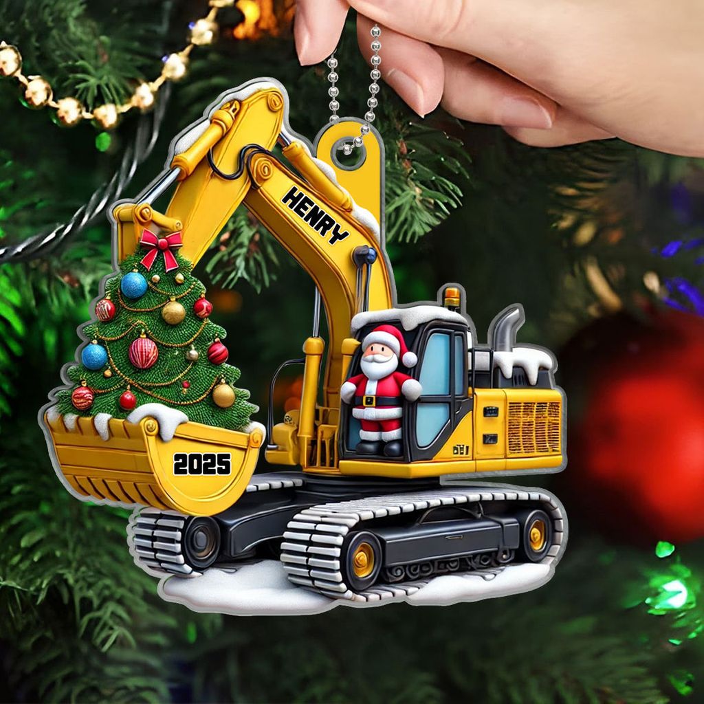 Personalized Xmas Excavator Construction Backhoe Ornament, Xmas Gift For Kids