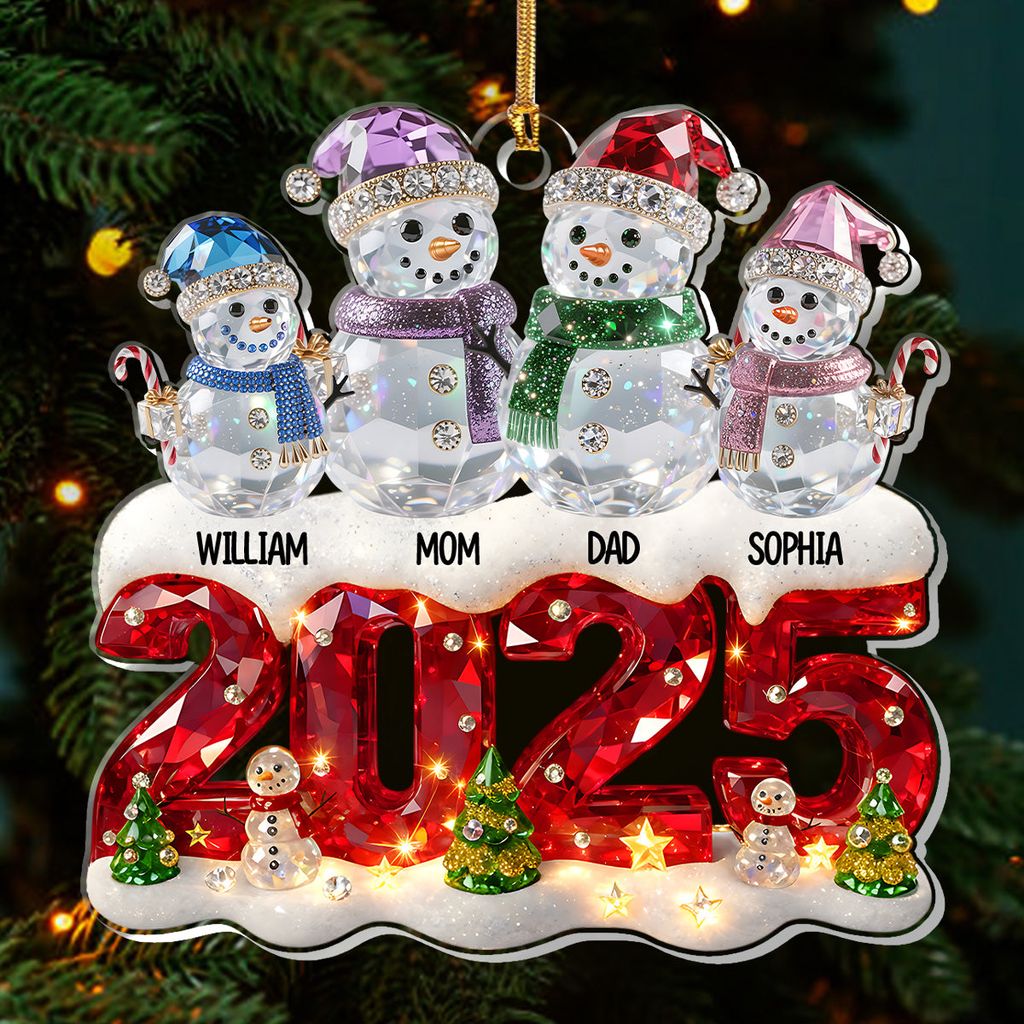 Snowman Family Christmas - Personalized 1-Layer Acrylic Ornament