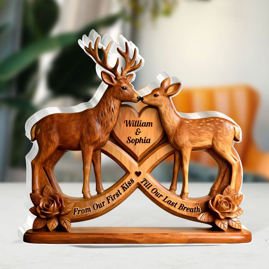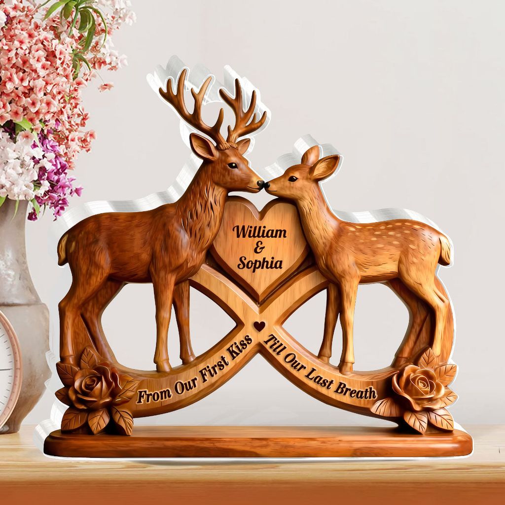 This personalized deer couple acrylic plaque isn’t just decor — it’s a heartfelt symbol of love that always finds its way home.With the buck and doe nuzzling at the heart, your names etched within, and the infinity curve binding your story, it turns any shelf into a reminder that your love is as steady and timeless as the deer’s journey through the woods.