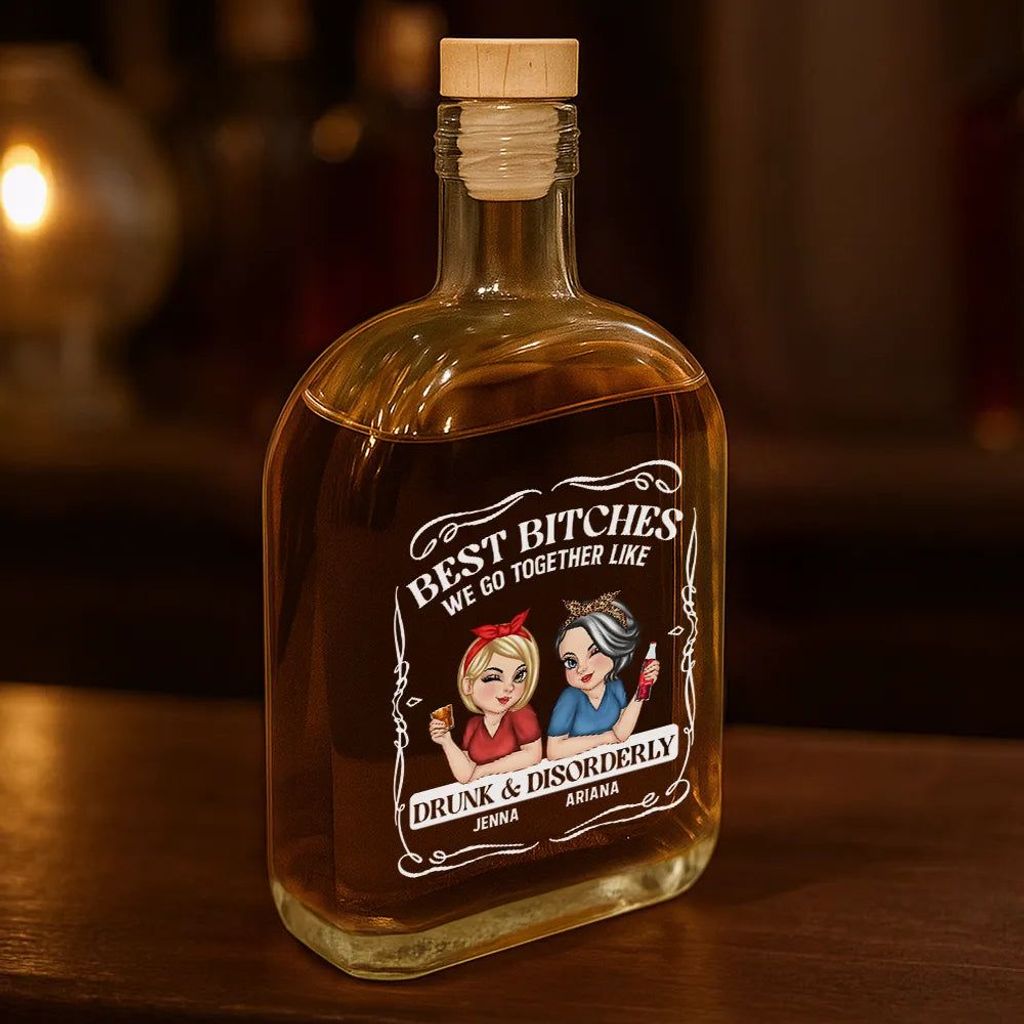 Make every celebration unforgettable with the We Go Together Like Drunk And Disorderly - Personalized Whiskey Bottle, the ultimate gift for besties that brings laughter and joyful vibes! A delightful pick for birthdays, Christmas, New Year, Galentine’s Day, or even a Bachelorette Party, this customized bottle is made to impress.